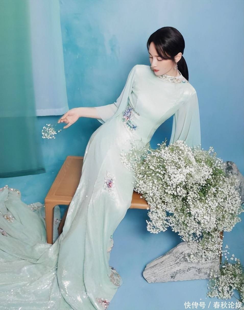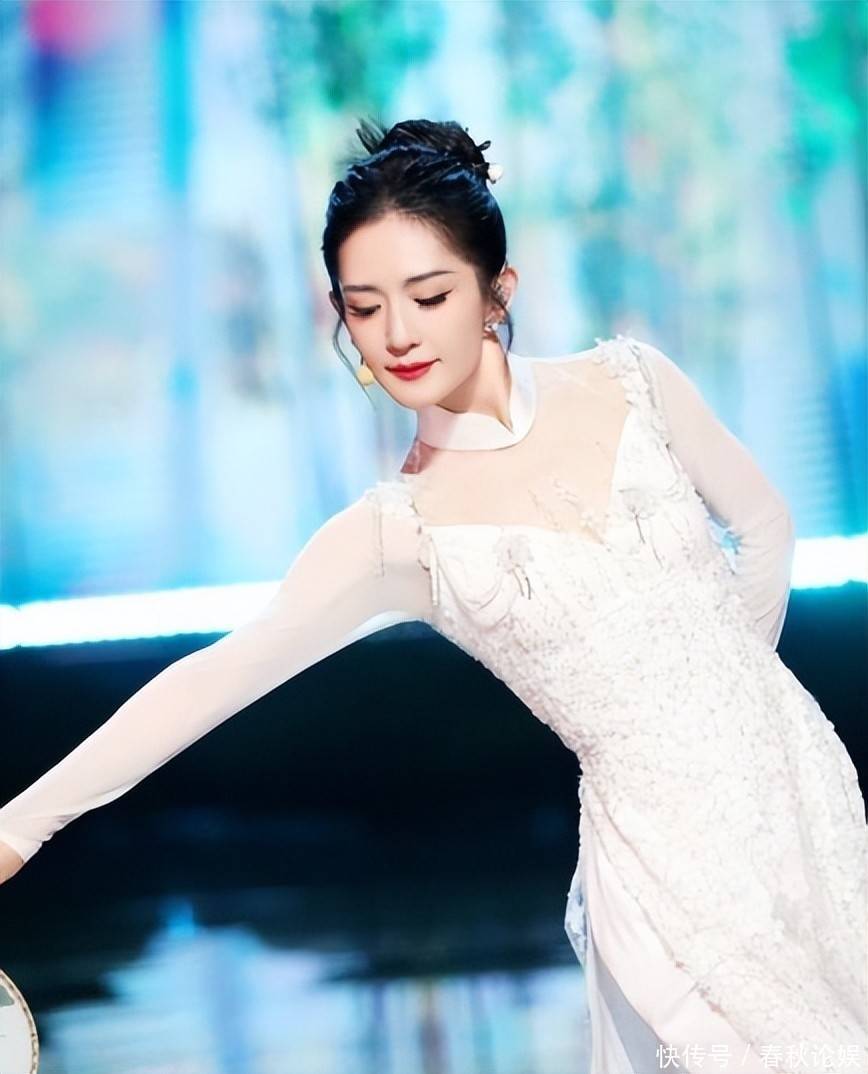 但50岁的蒋勤勤体型相较以往略有变化,淡绿色中式礼服虽设计精美,却因镜头调度问题,始终未给予全景展示。