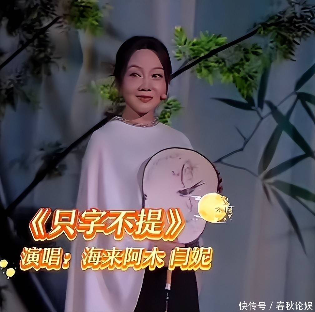 可到了央视秋晚的舞台上,她与海来阿木合唱《只字不提》时,却手持折扇、神情严肃,双眼圆睁、姿态规整,丝毫不见此前的松弛与俏皮。